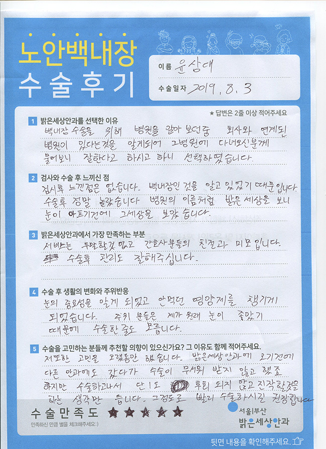 7. 처음으로 신체 부위 전체 제거 수술을 받았습니다. 작은 수술이었지만 인체가 완벽하지 않다는 것을 다시 한 번 깨닫게 해주었다. 그리고 최대한 오랫동안 교체하지 않은 눈에 남아있는 렌즈를 보관합니다. 이제는 눈의 피로를 피하기 위해 위를 올려다보는 습관을 들여야겠습니다. * 기록하여 나와 다른 사람에게 도움이 되기를 바랍니다.