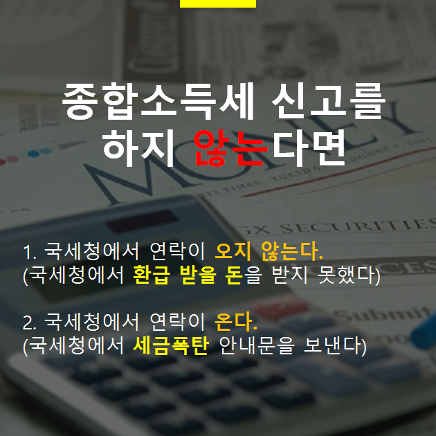 청년들이 종합소득세 신고를 하면 안되는 이유! 이제 더 잘 아시죠? 사실 세금신고는 그리 어렵지 않습니다. 따라서 5월에 세금 신고서를 제출하는 것을 잊지 마십시오. 종합소득세 신고가 어려우신 분들은 언제든지 연락주세요!
